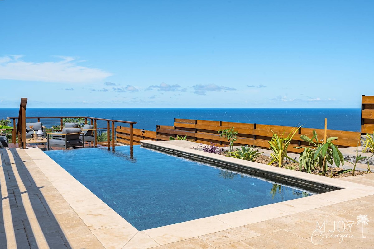 Lodge en bord de mer. Au bord d’une petite falaise, face à l’océan et aux roches volcaniques, venez découvrir ce petit coin de paradis. Conçu comme une suite d'hôtel de charme, il est idéalement adapté aux séjours en couple, avec ou sans enfants. Pour vos enfants, une mezzanine aménagée avec lit de 160 qui les attend. Jacuzzi en pierre, chauffé, face à l'océan indien. Et pour les chanceux de début juin à la mi-octobre, vous pourrez admirer du lodge les baleines.