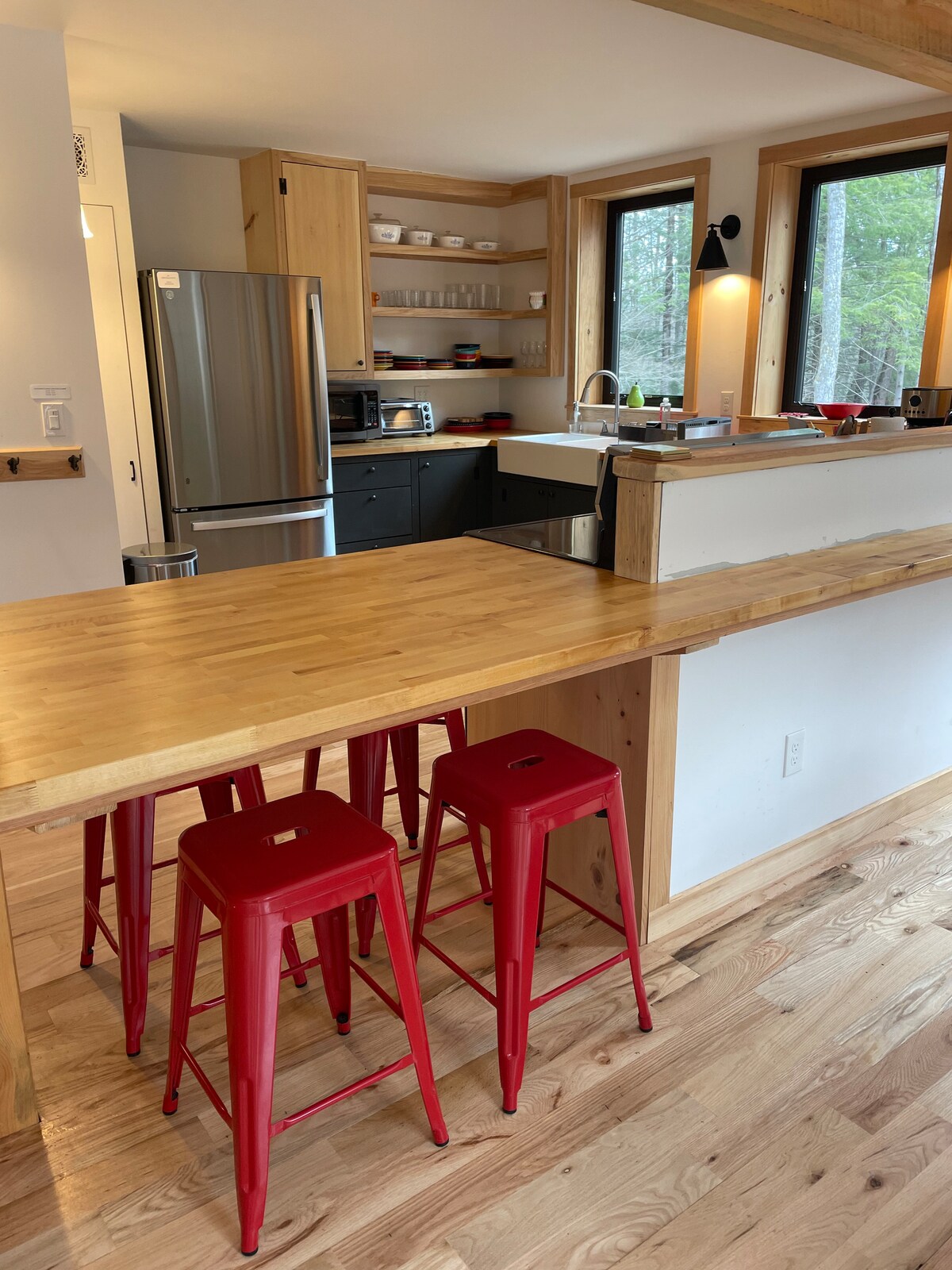 Hot Breakfast and Lunch INCLUDED every day in your stay. Our general store will make you fresh egg sandwiches and coffee. Subs or pizza lunch. Welcome to Pi π aka Lakefront Loft. One of a kind custom built 34 foot high raised container home overlooking a beautiful southern VT lake with direct lakefront property with your own private dock. Our spacious home custom designed and built with 8 shipping containers boasts every amenity you want. 3 master bedrooms designed with amazing panoramic views.