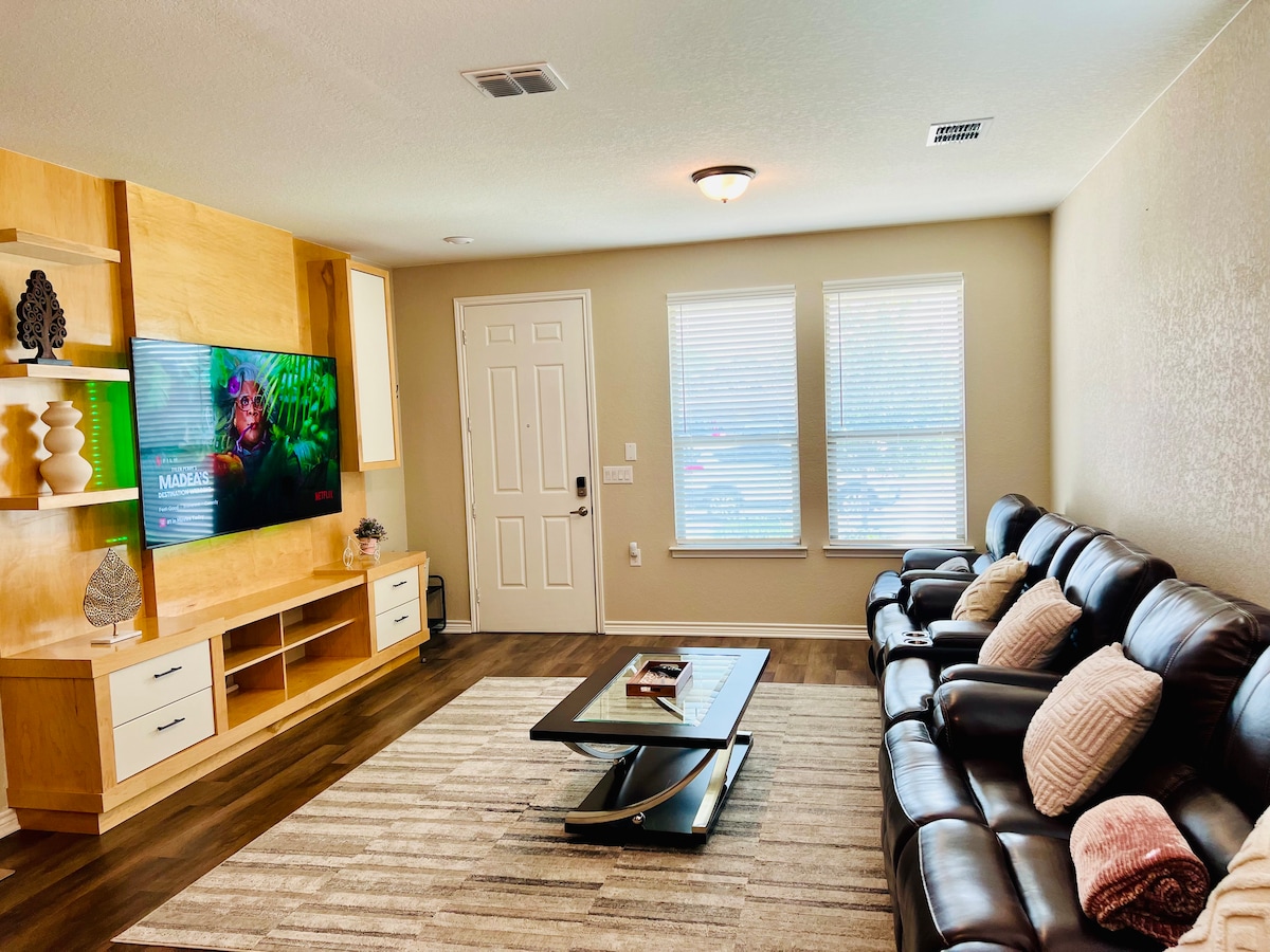 Hi! We've put lots of love in the home and hope to make your stay a wonderful experience. - Conveniently located near I35, FM1604, RAFB, 5 minutes away from IKEA and lots of restaurants - two-care garage with plenty of room for two cars in the garage and extra parking in the driveway - Super safe family friendly and quiet neighborhood with Live Oak PD patrolling the area. Live Oak PD and Fire Dept close by - sleeps 9 - SMART TV with adjustable arm and plenty of seating - washer and dryer