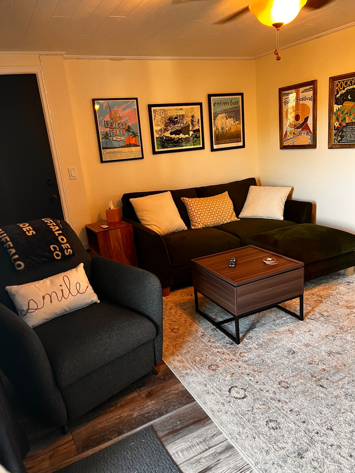 A simple, comfortable private suite with a separate entrance in a quiet neighborhood just 1.5 miles from downtown Longmont. 15 minutes to Lyons, 25 minutes to Boulder, and 45 minutes to Estes Park. Includes a large room with a dining table, mini fridge, 3-in-1 microwave+air-fryer+convection oven, Keurig with coffee, dishes, private bathroom and linens. Queen bed, 50 in Smart TV and WiFi.