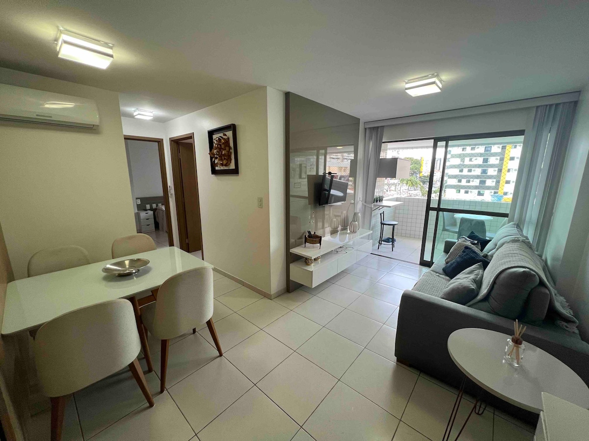 Enjoy a complete and modern apartment with 2 fully air-conditioned bedrooms. We are on the 5th floor, with a spacious balcony and stunning oceanfront views that only Maceió has! Modern and newly renovated apartment with a super-equipped kitchen, fast Wi-Fi. Perfect location meters from bars, restaurants, shops, supermarket and the largest food park in the city. High-end building with 24-hour security, parking, fitness center and game room.