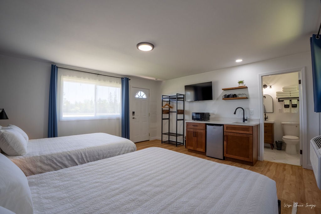 The Millecoquin’s Suite is is located right off US-2 in Naubinway, MI. The room has two beds, king and queen sized. The room comes with a smart TV and WiFi. There is a full bathroom with unlimited hot water. The room is also complete with a kitchenette and mini fridge.