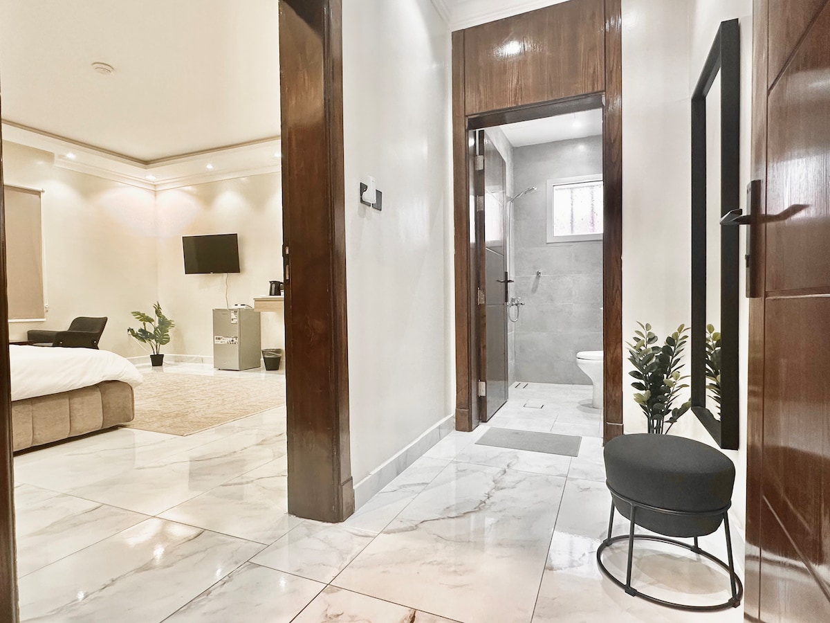 Welcome to the tranquility of Medina city Executive one-bedroom apartment with a full bathroom & a private entrance This place is ideal for those are in a business trip. This luxury residence is designed to provide our guests with comfort and luxury characterized by luxury furniture and a comfortable experience in terms of location and services, Due to its proximity to the central area behind Quba Main Street, which makes it easier for our guest to access all services, shopping and restaurants
