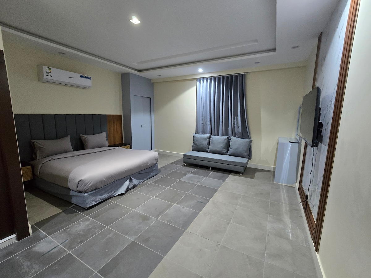 Enjoy a fully equipped stay in this quiet and cozy unit! It features a living room, a bedroom, and a kitchen with a microwave, electric kettle, stovetop, washing machine, and ironing tools — plus a private bathroom. ✅ Competitive rate — the lowest in the market for this type of unit ⭐ Rated 4.1 on Google, reflecting our guests’ satisfaction 🛎️ Daily room service is available 🛡️ 24/7 security guard on-site