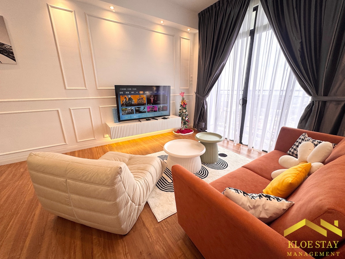 How many pax can stay here: Apartment can accommodate 4 pax and still comfortable for 6 pax. It's located in the heart of Melaka City and just 3 km away from historical building A'Famosa and Studthuy's Building. Facilities: Provide FREE parking lot for 1 car at level 2. Others can park at the ground floor. List of amenities that provided within the house: This stylish apartment also come with 2 queen-size beds & 1 queen-size foldable sofa bed, 1 extra toto, 60" LED android TV, WI-FI, etc.