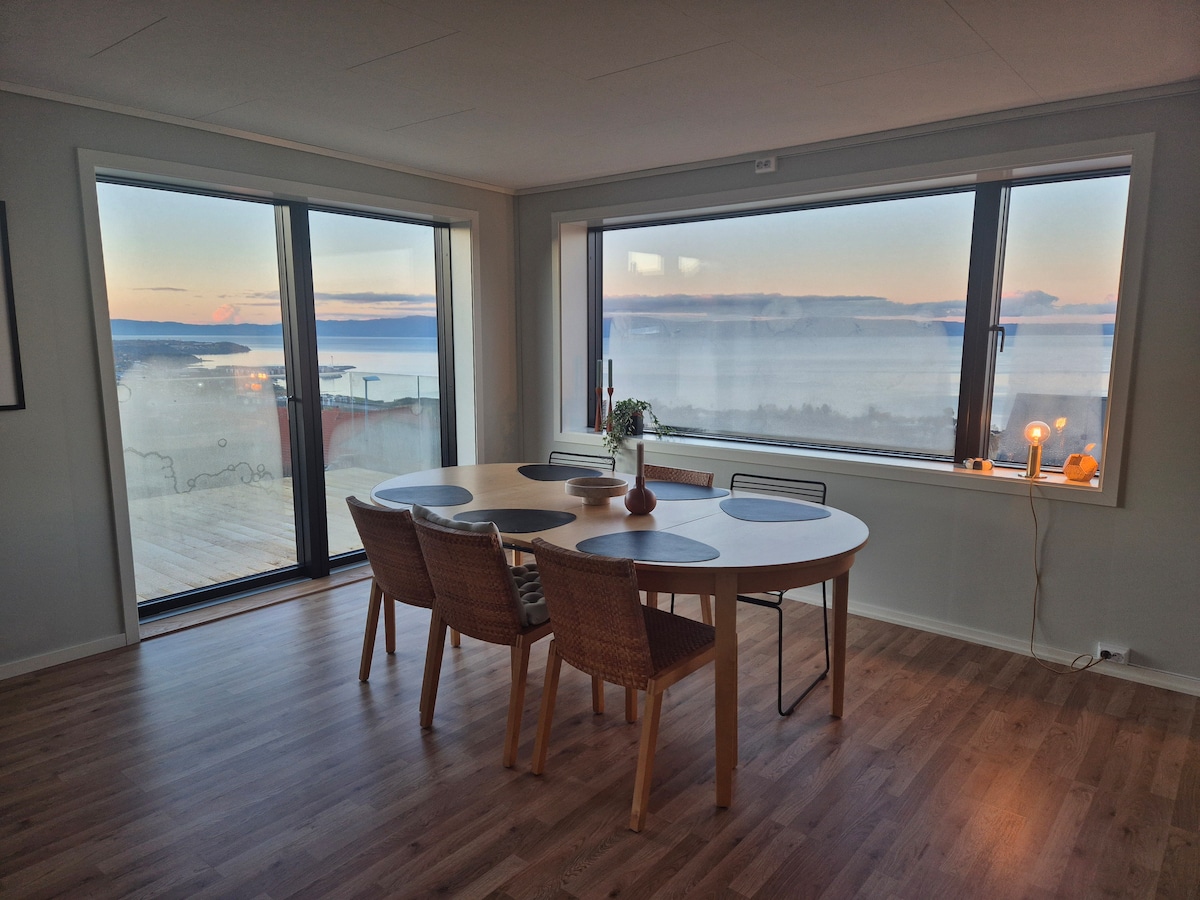 Stort moderne hus perfekt for et opphold med kjæresten, familie eller venner. 8 sengeplasser, 3 etg, stort bad, 3 toalett, fantastisk PRO hjemmekino 130 tommers laserprojektor for fotball eller filmkveld. Carport med elbillader. Panorama fra alle etager i huset og fra spektakulær takterrasse med luksus saltvanns-jacuzzi for 3 personer, tilgjengelig også på vinter. Nært kjøpesenter, strand, turstier med mere. Nært Værnes flyplass og Trondheim. Leies også ut til arbeidere på oppdrag i området.