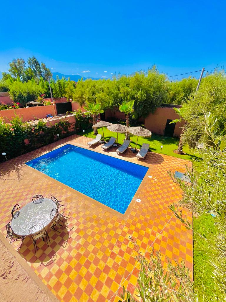 🌴 Private Villa with Heated Pool - Quiet & Family 🌴 Enjoy a relaxing stay in our spacious and peaceful villa, not overlooked. Private pool, garden with turtles, air conditioning and Wi-Fi. Ideal for children, close to: - 🎪 Jemaa el-Fnaa Square (35 min) - 🗻 Ourika Valley (35 min) - 🐪 Camel rides - 🎢 SmileParc & Aqua Park - 🏎️ Quad biking in the middle of the Agafay Desert Cook on request. Book now for an unforgettable vacation! 🏡✨