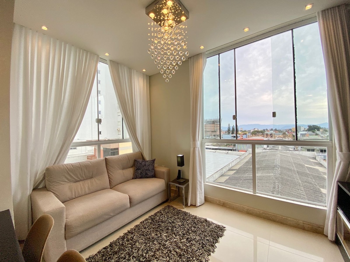Apartamento com vista e uma quadra do mar, central