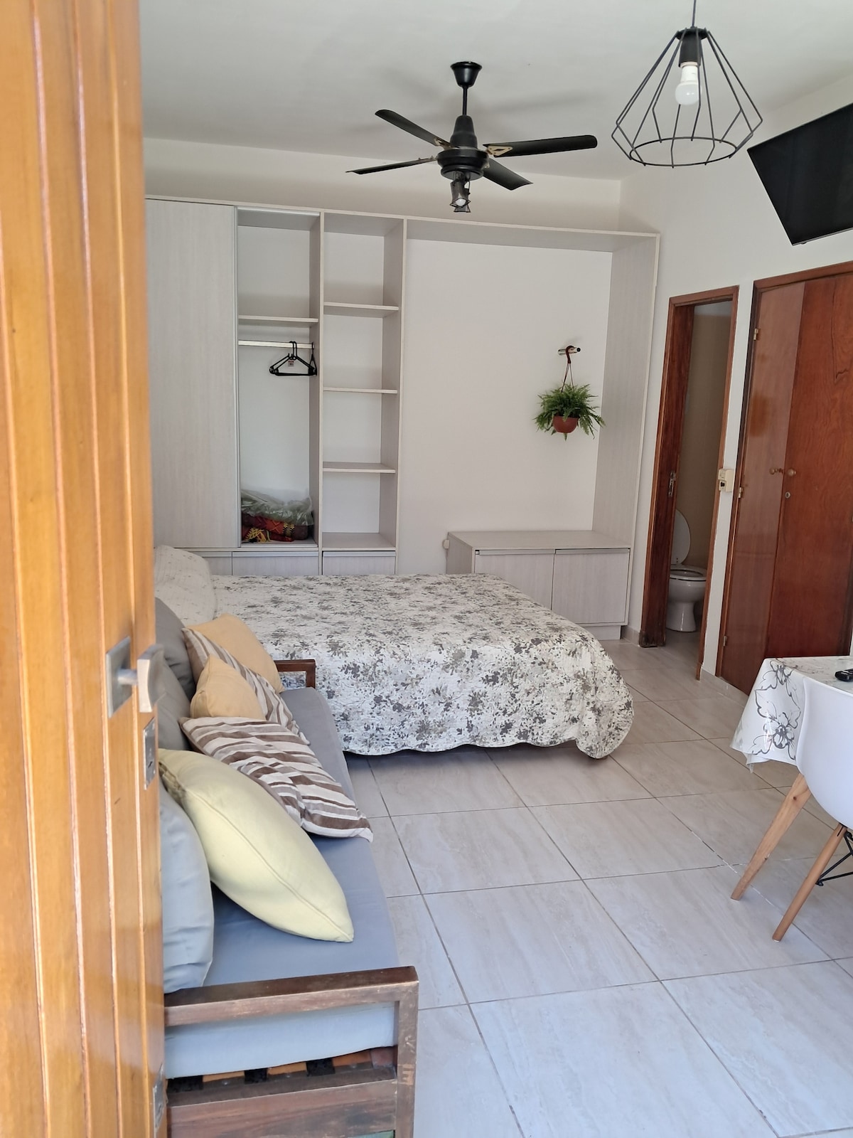 Keep it simple at this peaceful and centrally-located place. It has a balcony facing the street. It is located half a block from Avenida Colon, 1 block from Plaza Mitre and 7 minutes from the beach. With taxi and bus stops 20 meters away and all kinds of shops nearby. The apartment has a separate and fully equipped kitchen and in the living room there is a table, a 43" smart TV and a comfortable armchair. The room is equipped with a brand new 2-seater sofa bed.