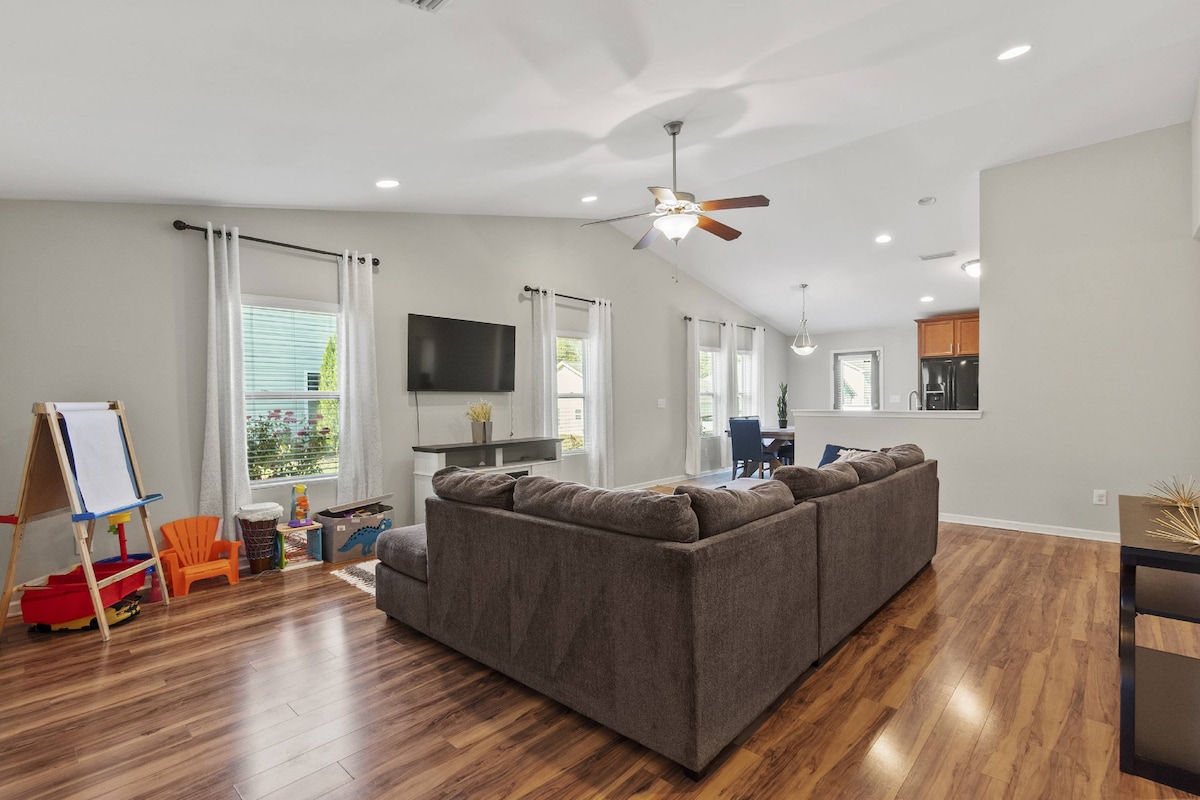 My space is very roomy and comfortable with blinds and entry door that brings in a lot of light. It is the entire lower floor that includes a patio for outdoor relaxation. The patio is shaded in the evening, and you can enjoy your coffee while the sun rises behind the trees in the morning. Beautiful landscape and vegetable garden to view along with the wall of trees at the back. ROKU TV. Netflix for entertainment. Kitchen appliances for basic needs.