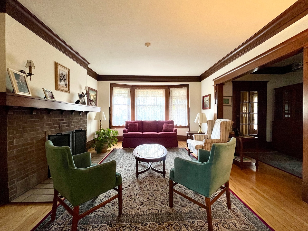 Ginkgo House-an Arts&Crafts/Frank Lloyd Wright home in the city & country A great place to relax; 7 mi to downtown Milwaukee, 3rd & 5th Wards, major shopping areas, Lake Express ferry, + 1 block from Lake Michigan; 5 mi from Mitchell Int'l Airport . Cold/hot breakfast incl. Microwave available. Laundry service for guests “on the road “.Indoor motorcycle & bicycle parking. We welcome guests age 12 & up to share our personal residence.