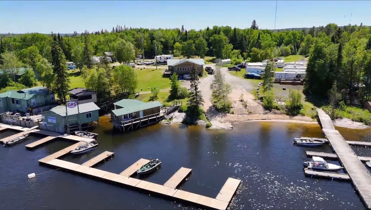 Road access, waterfront cabin Minaki, Pistol Lake