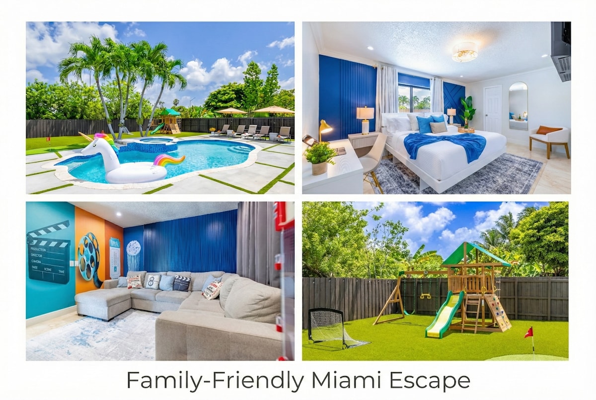 5-STAR SUPERHOST EXPERIENCE! This GORGEOUS 4 bedroom oasis home located close to all that makes Miami great. This unique home features a large HEATED pool with beautiful outdoor lighting & seating, which our guests cannot get enough of! This beautiful home boasts a super fun game room & home theater, which is great for guests of all ages! The home's living room is perfect to relax & enjoy the large TV with Netflix. In fact, all bedrooms are equipped with a smart television for your enjoyment!