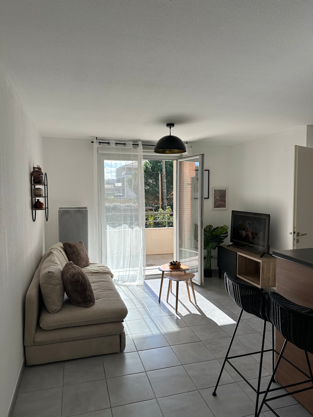 Montauban in the city center, on a quiet street close to the famous MIB, restaurants and the national square. Apartment in old building, tastefully renovated, 44 m2, air-conditioned It can accommodate 2 guests (umbrella bed on request) The apartment is located on the 2nd floor. The lounge room is spacious and bright, with sofa dining table, TV, WiFi. The kitchen is very well equipped The bedroom is located behind the living room with a glass roof with closet and new bedding sheets provided.