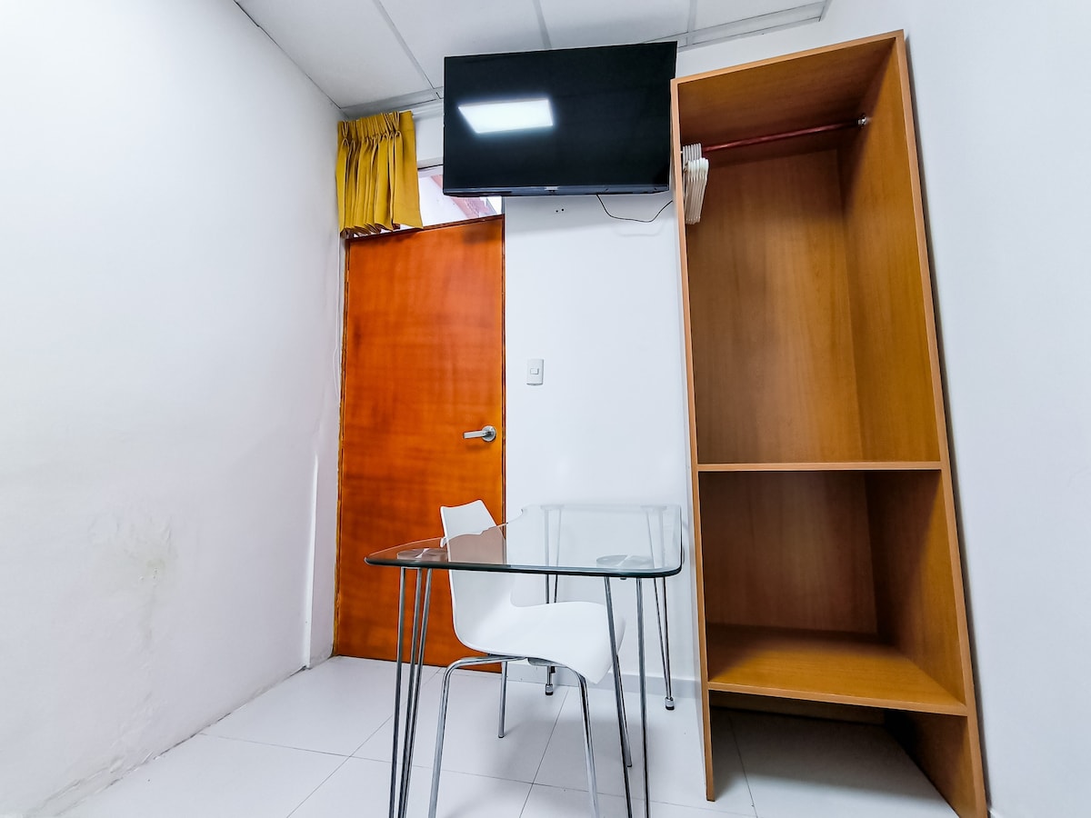 Modern, cozy and functional mini-apartment. If you are looking for comfort, cleanliness and privacy in the heart of Chiclayo (No noise), this is the place for you. Perfect for executives, couples or travelers. Our location is unbeatable: Just 8 blocks from the Airport, 5 blocks from the Bus Station, and steps from Real Plaza and Open Plaza (2 blocks). The bedroom ensures optimal rest in a 2-seater bed. Bathroom with hot water 24 hours a day. Enjoy the living-dining room with Wi-Fi, Smart TV and a fully equipped kitchen.