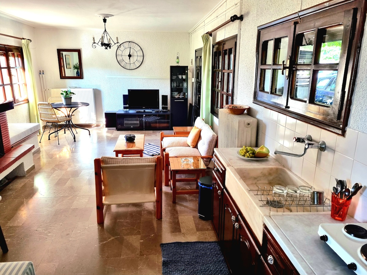 A cute woodhouse (15m2) in the beautiful garden of the Hotel Cokkinis with the panoramic seaview. Bathroom inside the room. It is completly renovated (restored with biggest size) at Jenuary of 2023 (so check the new reviews). The beach is famous for the beauty and the cleanest sea waters of Attica,it's under the house. There are the services of Hotel Cokkinis (restaurant, cafe, bar) in the garden. The place is perfect for people that looking for the beauty of the greek nature and relaxation!