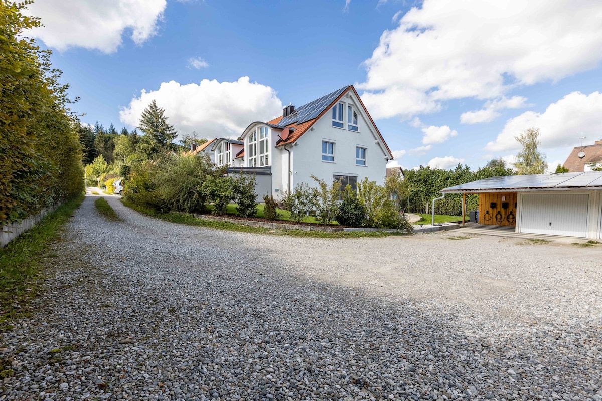 Welcome to Villa Grafrath! The house with a huge open plan kitchen-living room including air conditioning, 3 bedrooms and a bathroom is about 150m2 in size. There is also a garden with a spacious covered terrace. The house has more than enough space for up to six people to enjoy a quiet getaway near Munich and the picturesque Ammersee. Check-in is flexible via smart lock.