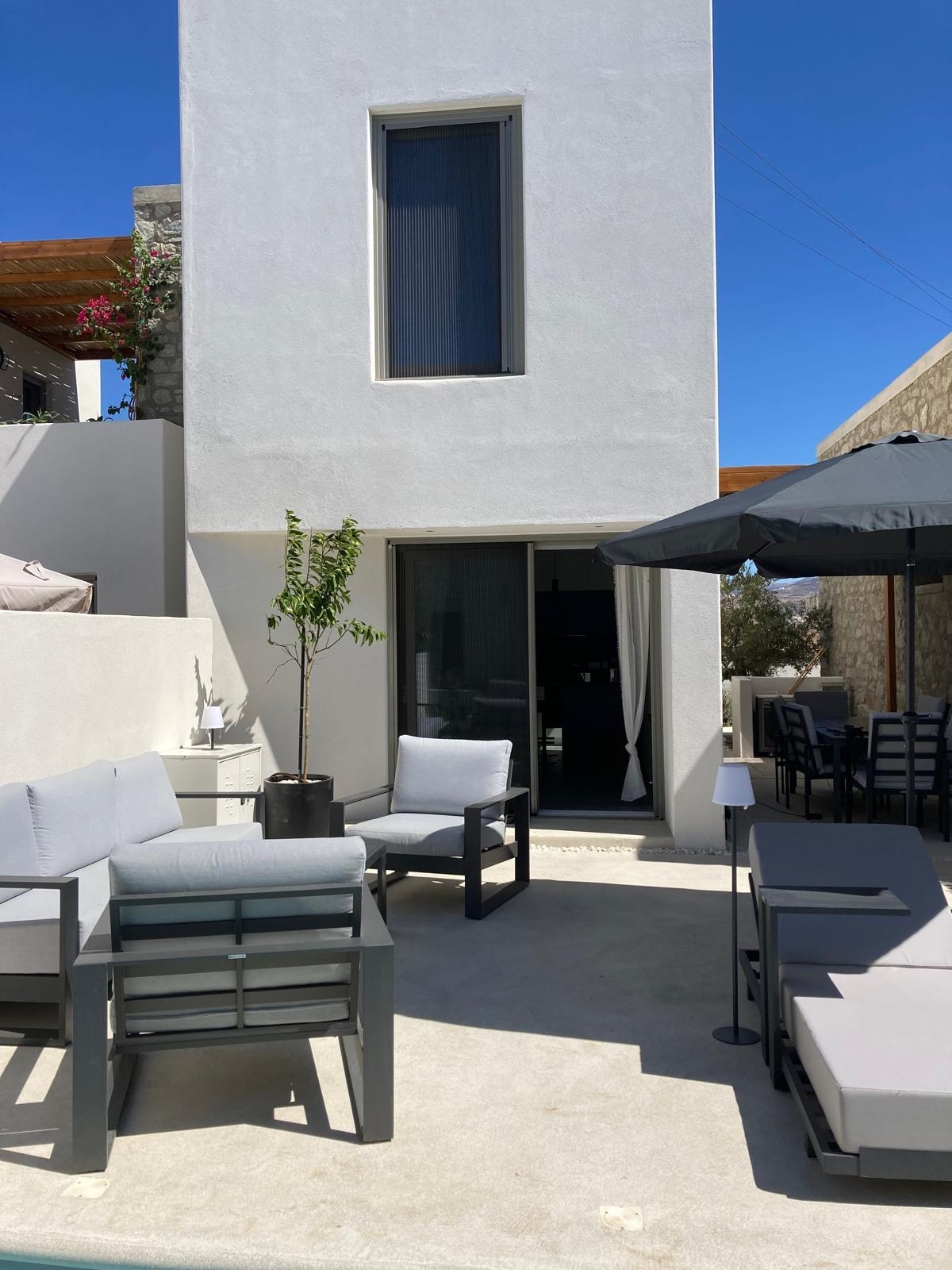 Welcome to Fyrōi on the island of Naxos! We are a complex of three two-story maisonettes with private swimming pools located in Kapares settlement in Agia Anna. The houses combine traditional island style with boho touches, creating a warm atmosphere that makes guests feel at home. We are located 800 meters from Agia Anna Beach and 900 meters from Plaka Beach. The distance to Agia Anna is a 10-minute walk, and to Plaka it’s a 15-minute walk.