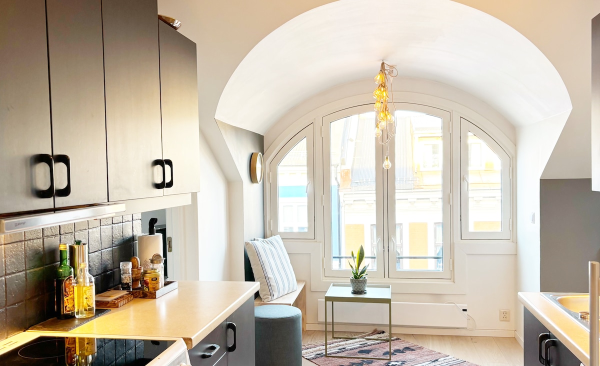 An atmospheric studio with a large balcony – in the middle of the city, with a warm and calm atmosphere in dark colors. Here you live in a home with personality, not an ordinary hotel room. Everything is within walking distance: grocery stores, restaurants, bars, pharmacies and green parks. Public transport is easily accessible and city life is just around the corner. Perfect for those who want to stay centrally, comfortably and a little differently. A unique atmosphere and a cozy, homey feeling await you.