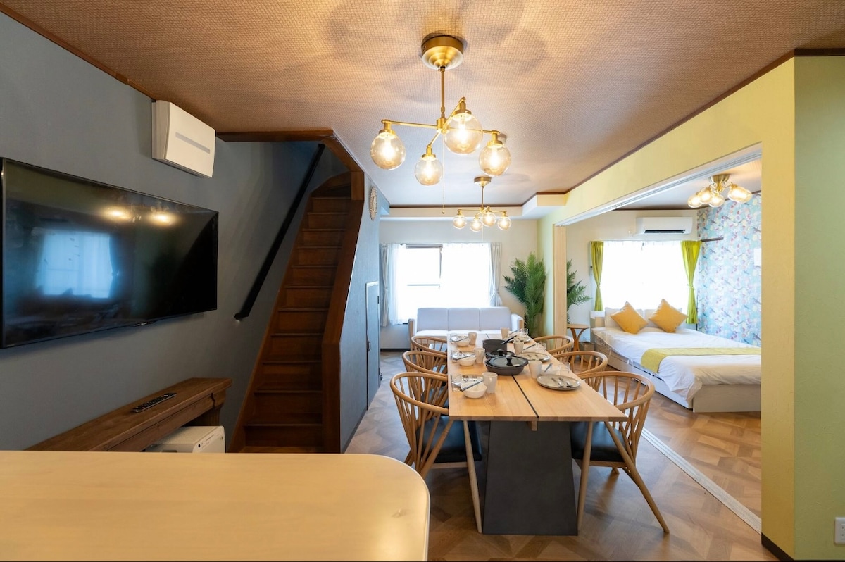Located in Osaka’s Joto Ward, this 1909 historic house is a rare WWII survivor. Renovated in 2015 by a renowned designer, it spans 150㎡, blending historical charm with modern luxury in a tranquil city-center retreat. Its elegant design harmonizes past and present, offering cultural immersion and spacious comfort.With two bathrooms, separated toilets, washbasins, and a large bath, it ensures privacy and cleanliness for groups. Experience culture, history, & comfort your perfect Osaka stay awaits.