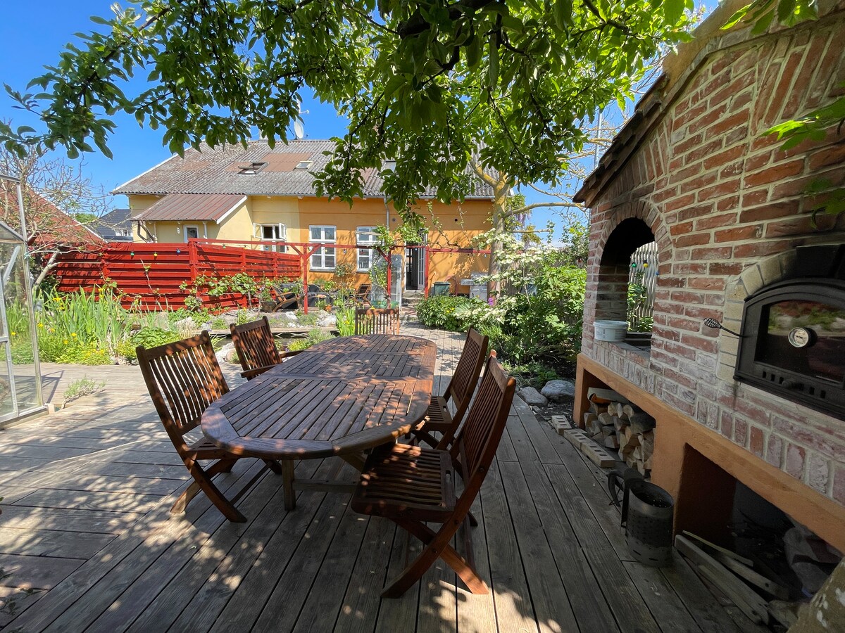 Nice apartment of 64 sqm. in a larger house with a private entrance. Free parking at the house. Nice large conservatory that belongs to the apartment, small kitchen, private bathroom and private bedroom. Brand new luxury bed from Au Ping, 160 cm wide. The apartment is close to the harbor, 700 meters from the station and with the amusement park in the backyard. A lovely garden that you are welcome to use. There is underfloor heating in the living room in addition to the bio fireplace, so the whole apartment is cozy and warm in the winter. Good discount for long-term stays.