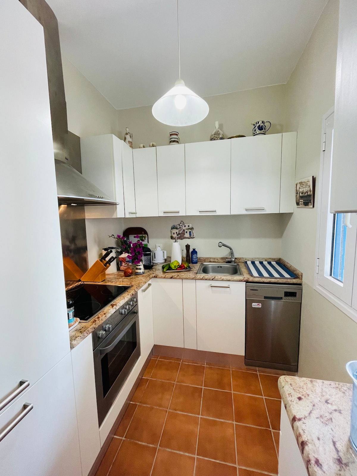 Newly built suite "AMMOS" with panoramic view of the area and the amazing sunset from our verandas. In the centre of Masouri, yet, in a quiet and isolated spot. Designed to accomodate families of four to five persons, with one separate bedroom and one double bedded traditional "kratthos". Kitchen is fully equipped to meet the demands of our guests. Next to "AMMOS", is also "THALASSA" suite, for four persons: www.airbnb.gr/rooms/27496967.