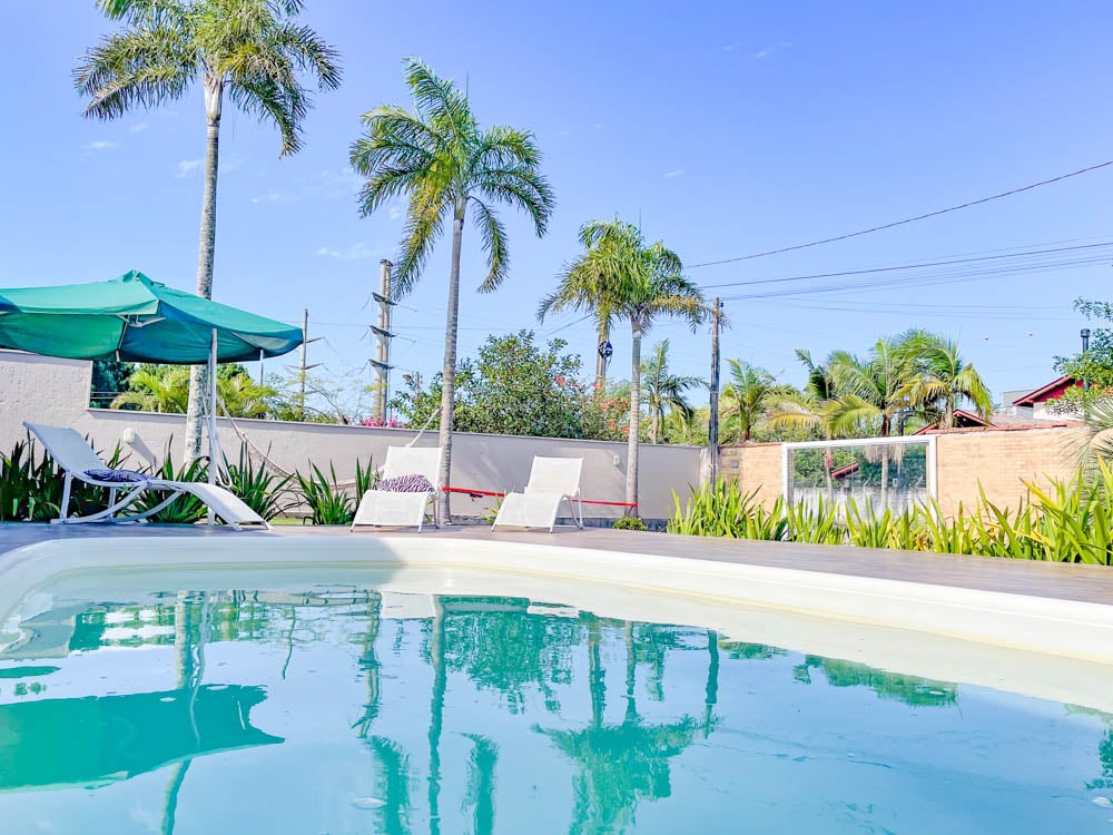 Relax with the whole family in this peaceful house located on Praia da Pinheira (1 block from the beach), one of the best beaches in Palhoça. It has 1 suite plus 2 bedrooms, with 2,5 bathrooms, and air conditioning in the rooms. Fully equipped house, kitchen, living room, outdoor space with barbecue and wood burning stove. The house is completely walled and has external cameras. 20A outlet on premises to electric charge your vehicle Bed linen with anti-allergy pillows and towels
