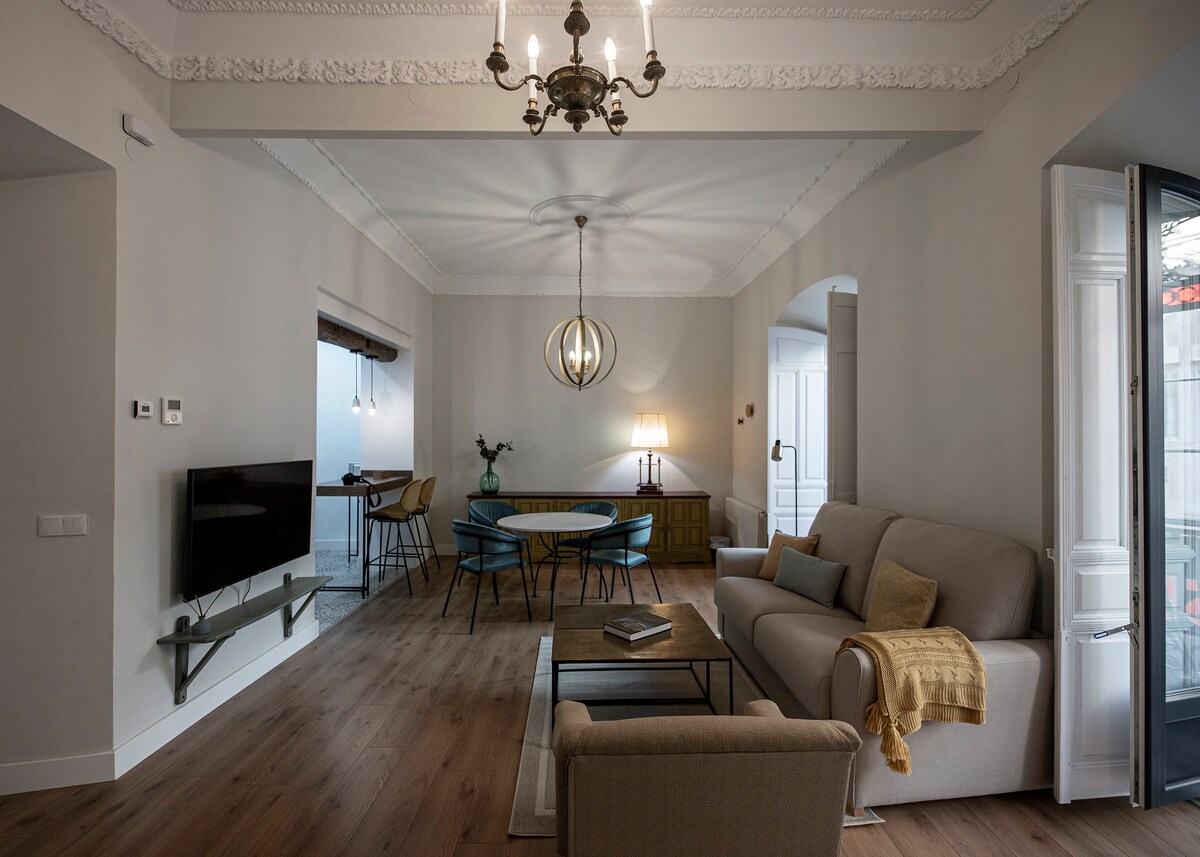 The Durán Tirso de Molina Apartments are 2 apartments in the historic center of Mérida, in a renovated house with a special charm. Spacious and tastefully decorated, in a prime location and ideal for remote working. Perfect for exploring the city on foot. With a private outdoor pool in season. For a getaway with your partner, family trip, business trip... You'll feel right at home away from home. Sleeps up to 5 people. Private parking option.