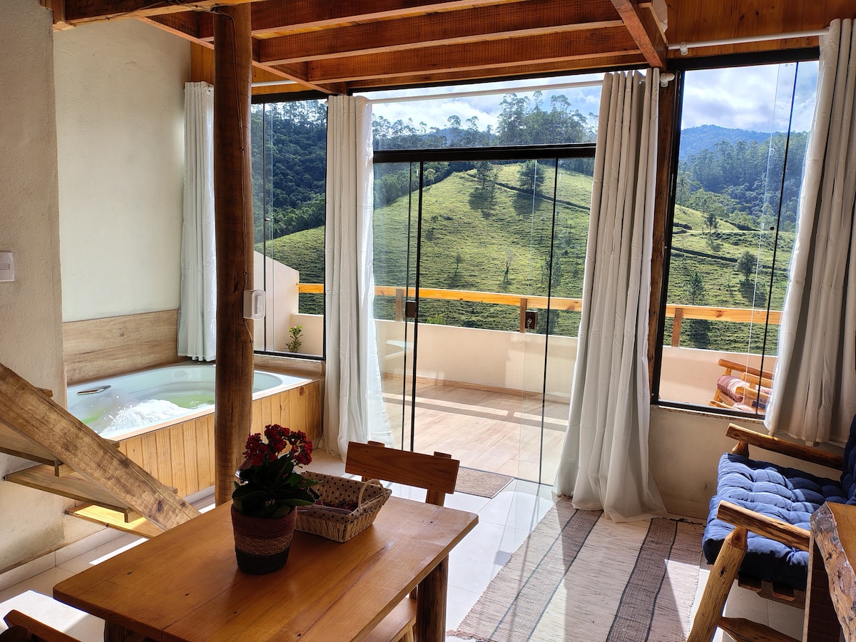 A perfect place for days of rest and relaxation with a warm hot tub overlooking the Mantiqueira mountains. The chalet is located on top of a hill, with a privileged 360° panoramic view of the Mantiqueira Mountains. We are approximately 1 km from the Aiuruoca River, within the boundary of the Itatiaia National Park (about 16 km from Pico das Agulhas Negras) and in the rural area of Itamonte. Our space is ideal for those who want to rest from their daily routine.
