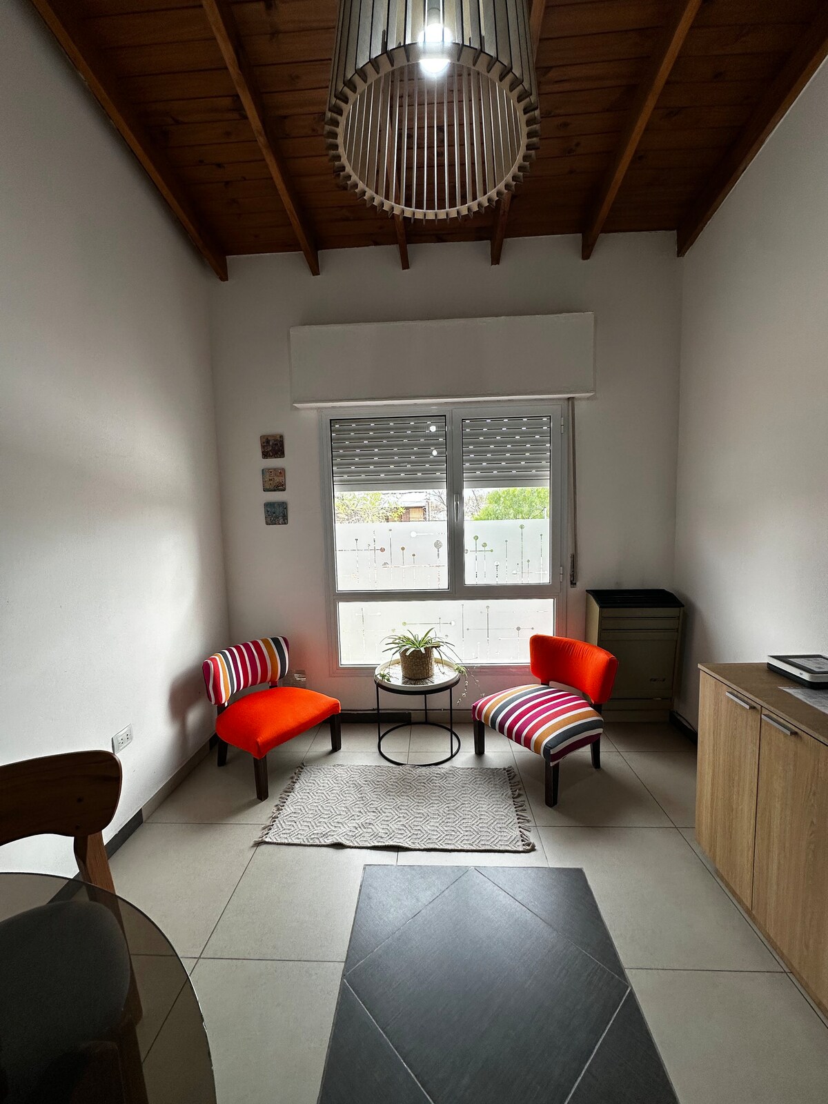 * AIRBNB CHARGES IN USD* For payments in $, see the last photo! NO KITCHEN - We offer you a beautiful apartment, attached to our house, WITH A GARAGE, and a totally independent entrance. A quiet space to rest. Five minutes from downtown and attached to R 7 (access to Circunvalación route). The apartment has two rooms, a bedroom with a double bed, TV, WiFi and a living room equipped with a refrigerator, electric kettle and utensils; it has two single beds. Private bathroom