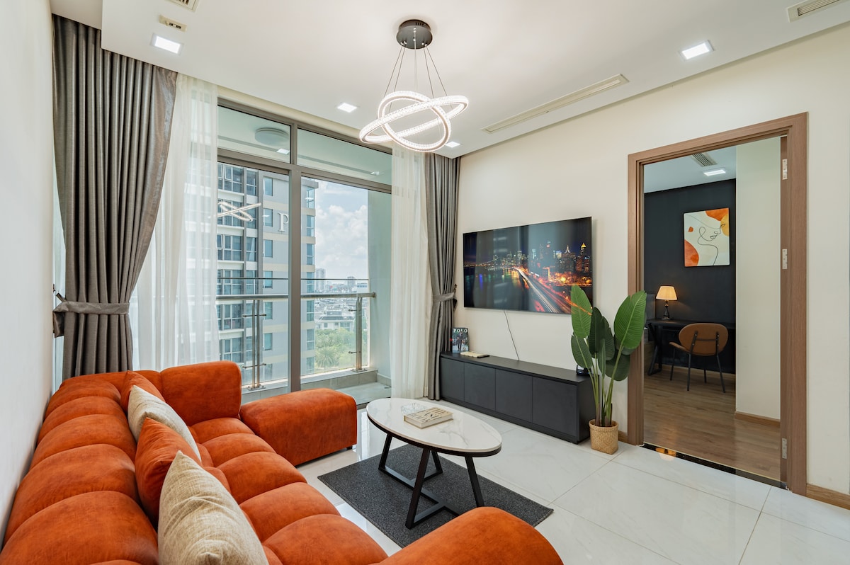 Spacious and stylishly-renovated 2-bedroom apartment with a beautiful view of the surrounding city, 3 smart TVs and a dryer. Fully-equipped with wide range of amenities (see photos) unmatched by other apartments in the city, fast customer service until late. Staying with us is the best choice for Guests who value reliability and convenience. Located in Vinhomes Central Park, a high-end area with restaurants, cafes, a mall, and the famous Landmark 81 tower. Just 10-15 minutes to city center.