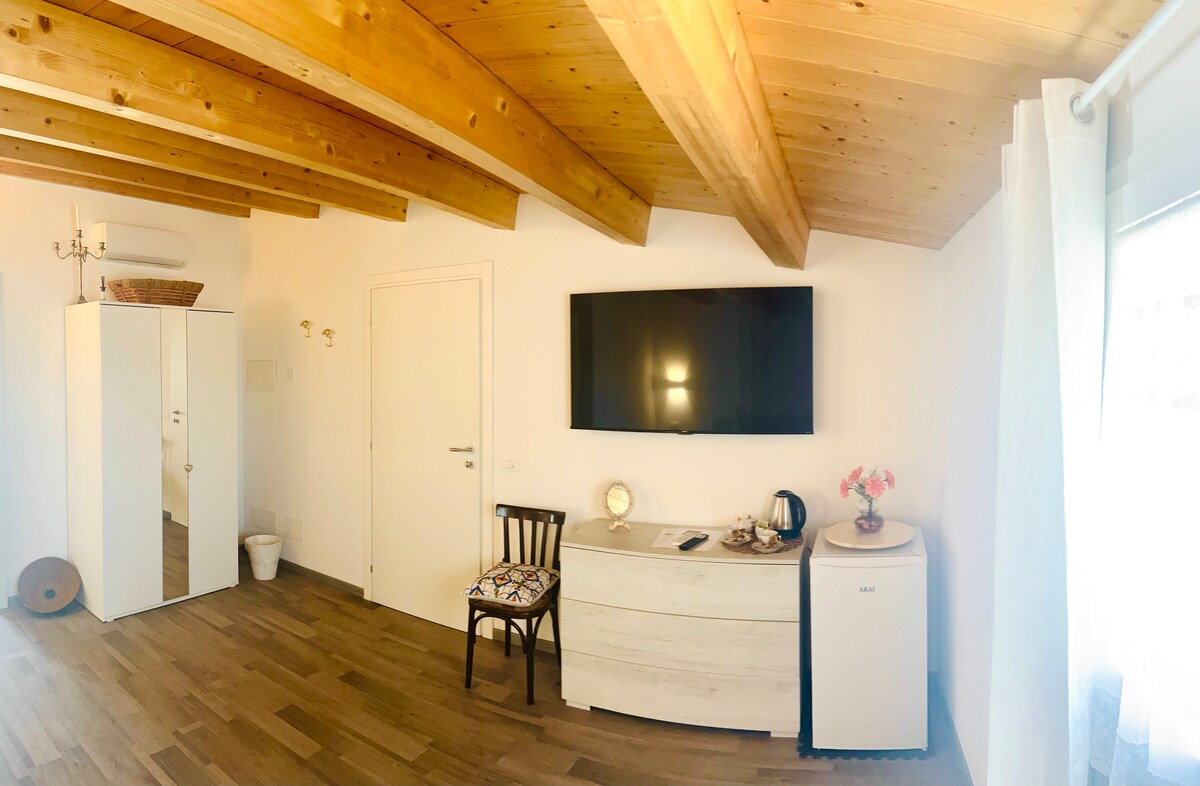 The Mizzica room is very comfortable, with a private bathroom, heating and independent air conditioning, a comfortable wardrobe and direct access to the breakfast room.