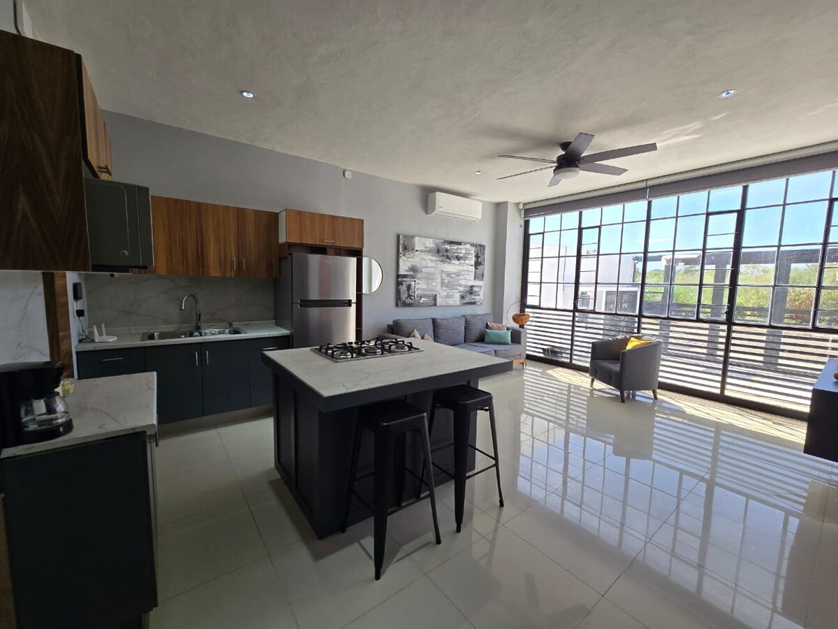Experience staying in a new apartment in Colima's most beautiful residential area, in a private environment, with outstanding architecture, spacious, fresh and ventilated spaces, with all the amenities. This home offers a central location to visit the best restaurants in town. A quiet street and at the same time super close to the main roads.
