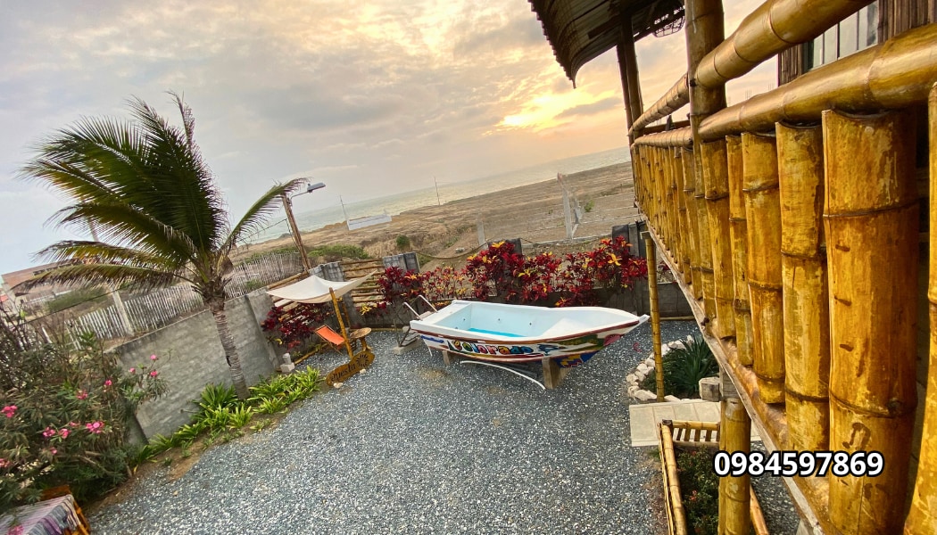 Near Playas is located this beautiful cabin in rustic style. The large windows offer sea views and hammocks in the shadow next to a small flowerbed make it possible to relax during the day. The place is unique for its tranquility, plants and mangroves that are home to various birds. It is a place to relax and let go of stress , to swim in the sea or read a book in the shadow.