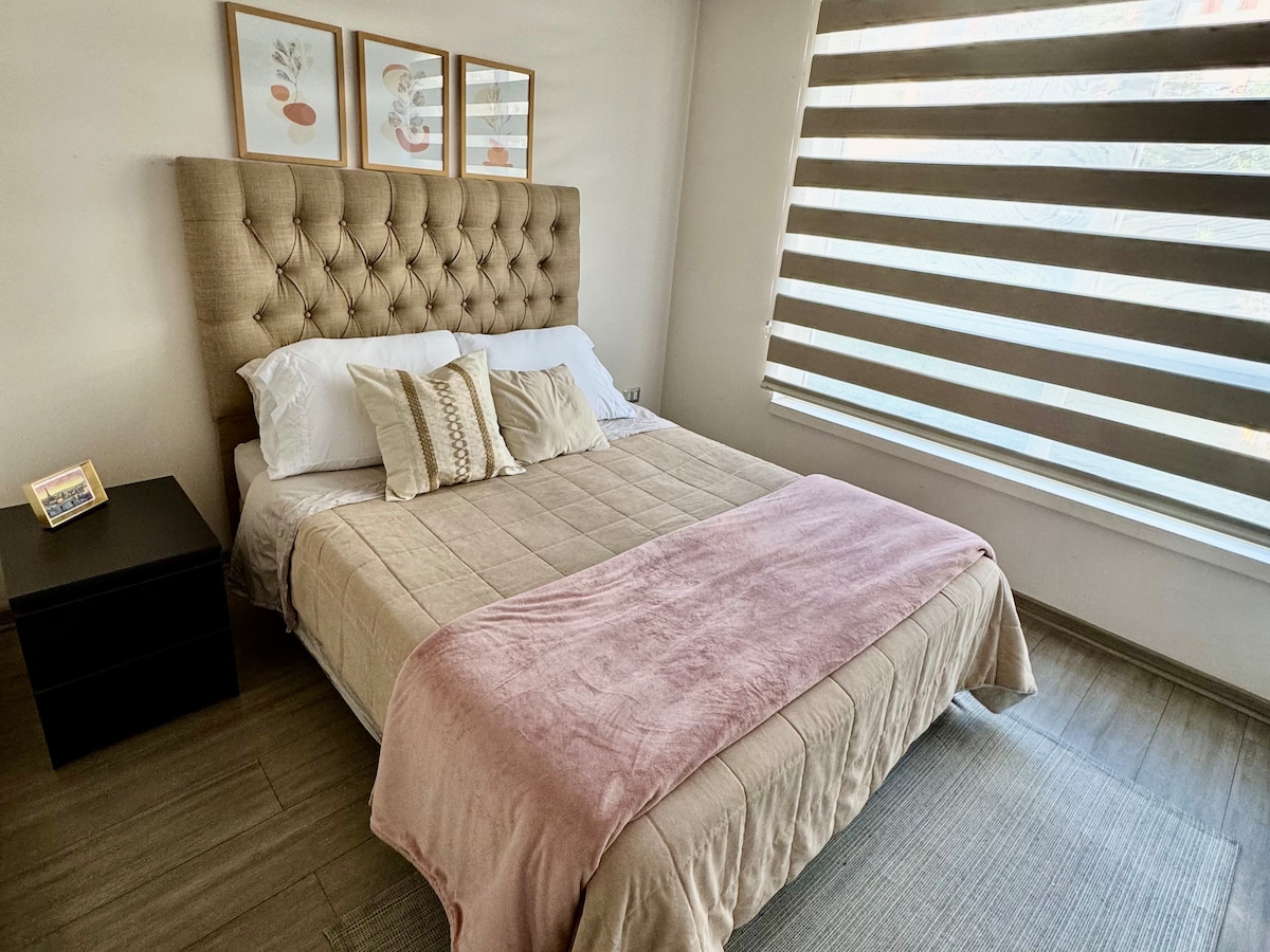 Welcome to my home in Santiago! Enjoy my modern and cozy apartment, located in Ñuñoa, steps from its square, the theater and the best restaurants. Master ✅ bedroom en suite with a double bed. Fast ✅ Wi-Fi and Smart TV for your entertainment. ✅ Fully equipped kitchen with everything you need. ✅ Pool with spectacular views. ✅ Private parking and security 24/7. Train ✅ station 1 block away Perfect for those looking for comfort and connectivity in Santiago. 🚇