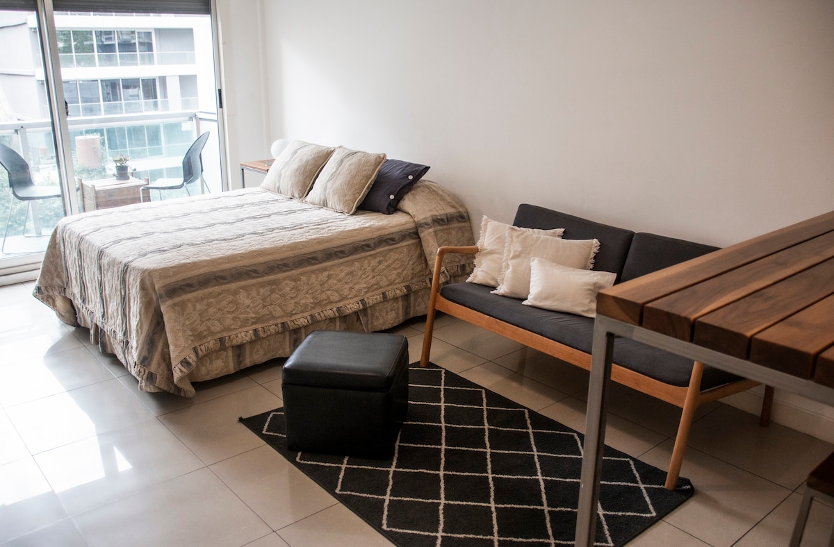 Enjoy this modern single room setting, full of natural light and with an open view that creates a unique atmosphere. Fully equipped with full kitchen, air conditioning, Wi-Fi and cable TV. Relax in the building's pool after a day of exploring. Located in the heart of Palermo Soho, surrounded by restaurants, bars, design shops and art galleries. A vibrant area with an excellent connection to public transport, it is the ideal place to experience Buenos Aires!