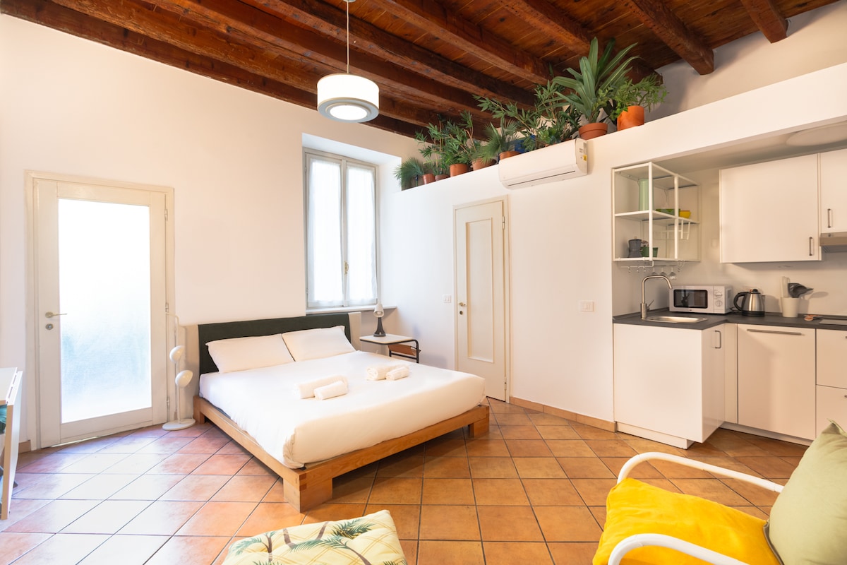 A stylish, bright loft ideal for travelling people, professionals/remote workers and leisure guests alike. 60 sqm with exposed beams and private terrace. Very fast Wi-Fi 1 Gbps fiber, large table desk, comfortable workspace, AC and modern comforts. Situated in a trendy, cosmopolitan area, full of Art Nouveau architecture, independent cafés, design bars, and international restaurants. Just a few minutes walk from Corso Buenos Aires, one of the longest shopping streets in Europe.