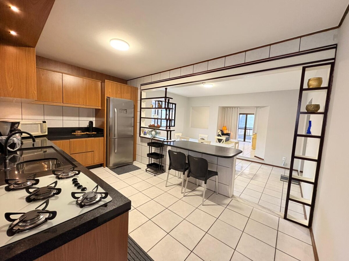 Apto 400 metros mar, completo com sala, cozinha e churrasqueira, 3 suítes e 1 lavabo. Suíte master cama queen size com cama auxiliar. Suíte 1 cama casal com uma cama auxiliar. Suíte 2 cama casal, cama solteiro com 1 cama auxiliar. Ar em todos os ambientes, incluindo 1 para área churrasqueira e 1 para cozinha. Cozinha equipada com todos os eletrodomésticos, incluindo maquina de lavar louça, cervejeira, adega, máquina lava e seca. Disponível também no depósito cadeira e guarda sol de praia.