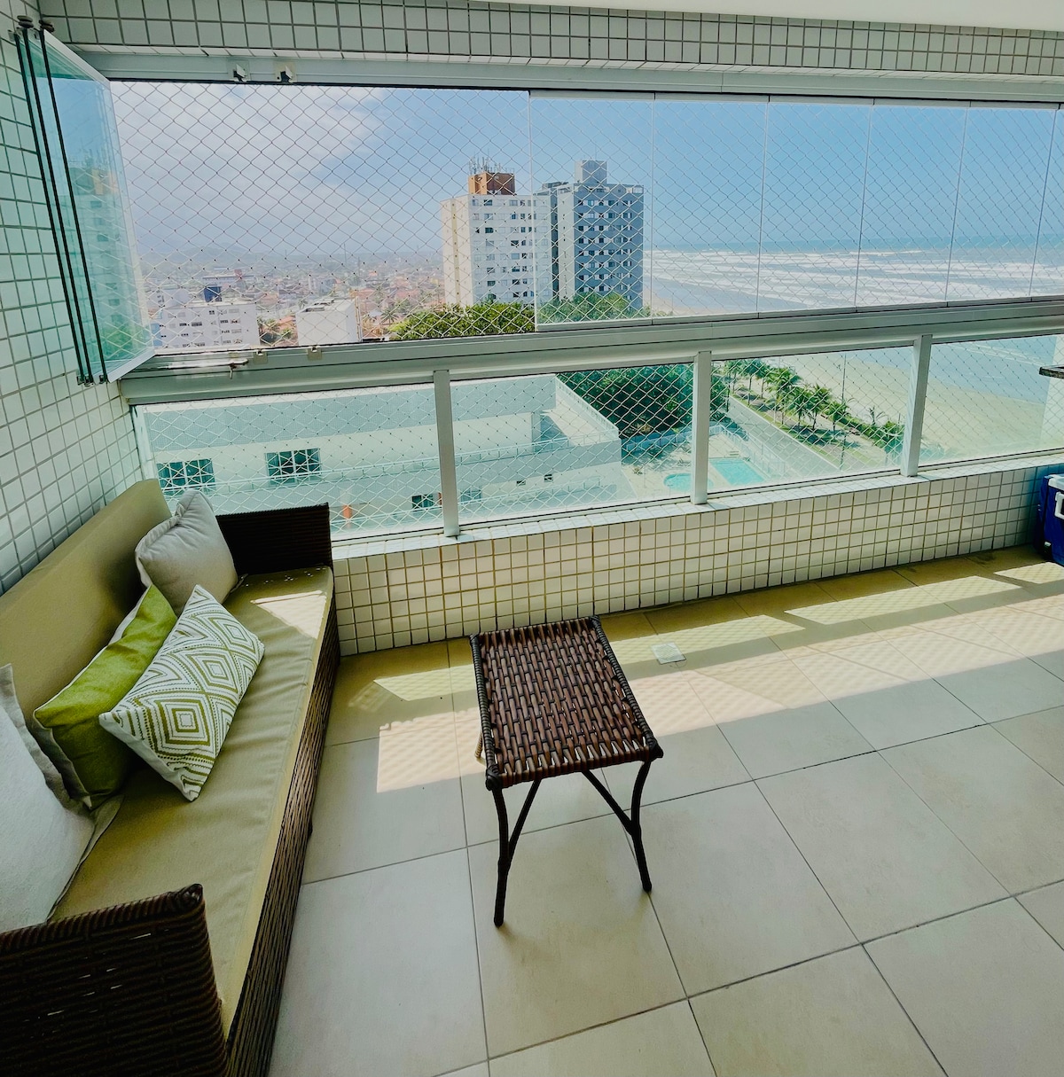 Welcome to JD. SOLEMAR! Apt by the sea, just 1 hour from São Paulo and 1.5 km before Mongaguá. 140m² space on the 11th floor, with panoramic view. Large living room, kitchen, laundry area and a suite with balcony, double bed and single bed; second suite with double bed and children's bed; and the bedroom has a double bed. The apartment also has a guest bathroom and a spacious balcony. We included parasol, beach chairs and Wifi. Building with garage, 24-hour concierge, pool.
