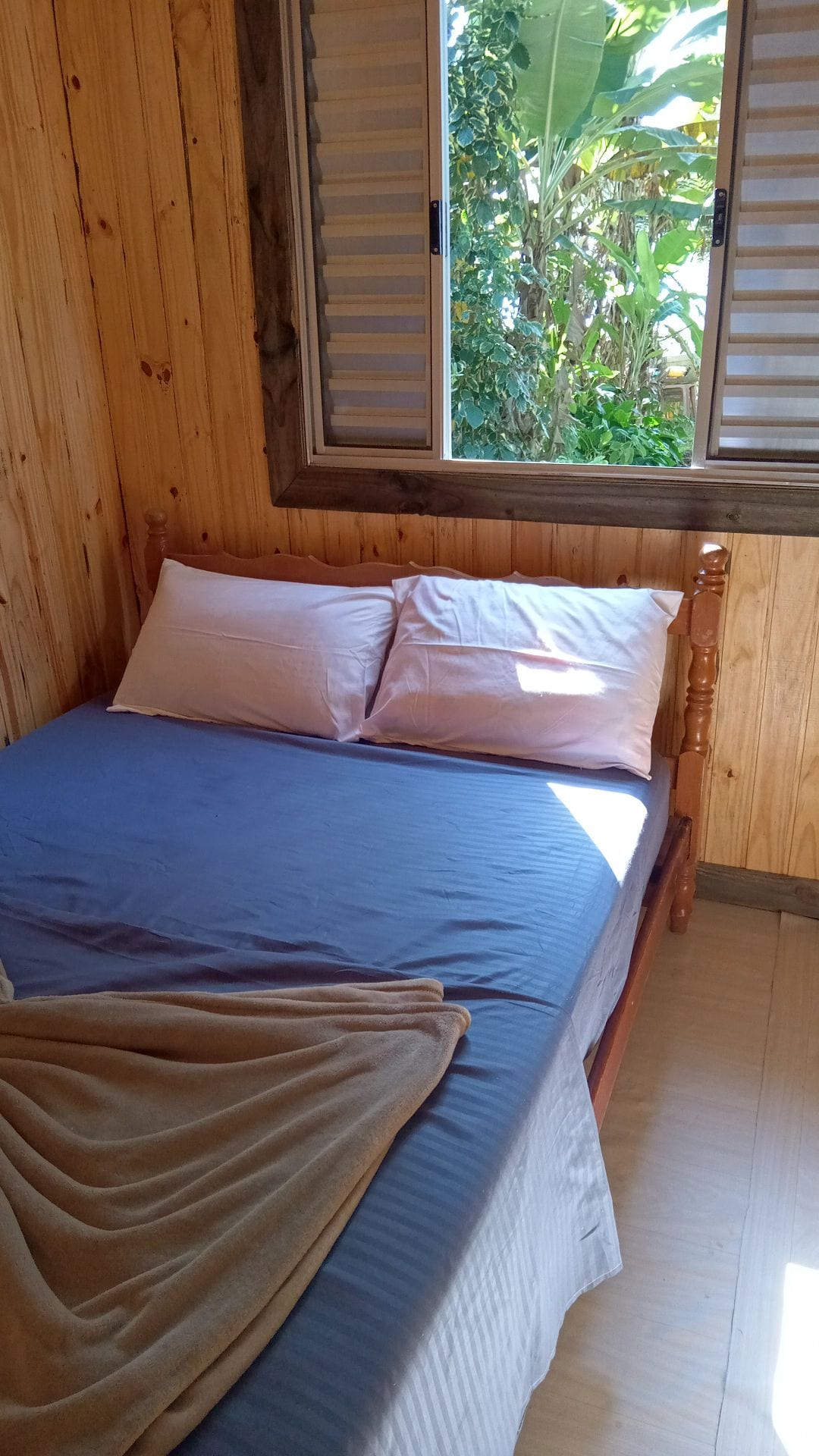 42 m² cabin by the dam with private hydro, queen-size bed, Smart TV, Wi-Fi, hot and cold air, full kitchen and a balcony with a wonderful view. Swimming pool, solarium, fire pit, barbecue, kayak, hammock area and other shared green areas. We also have a breakfast option (charged separately) - Access by paved road -No We Do Day Use - We do early checkin -Checkout after 3pm will only be allowed if you don't have guests arriving