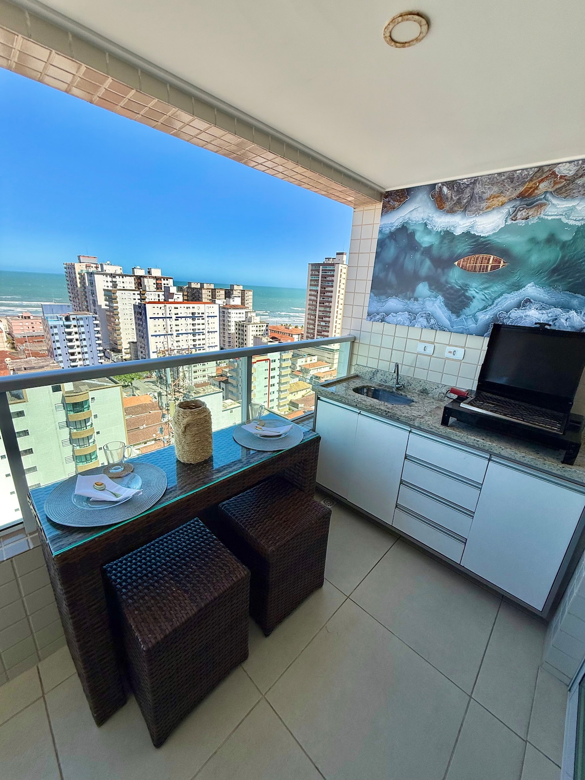📍 Faça tudo a pé! * 50m do Carrefour, Extra, farmácias, feirinha e inúmeras bares, restaurantes, McDonald's, Habib's e Av. Costa e Silva. 🌊 VISTA DESLUMBRANTE- Beira-mar - Praia Guilhermina! 🕗 Flexibilização do check-in e check-out, zero taxa e dentro das possibilidades. 🗝️ Self Check-in 📶 Wi-Fi fibra - 400 Mega. 📺 SmartTv-50 Pol. 🍖 Kit churrasqueira. 🪟 Envidraçamento sacada. 🛌 Roupa de cama e banho - 100% algodão