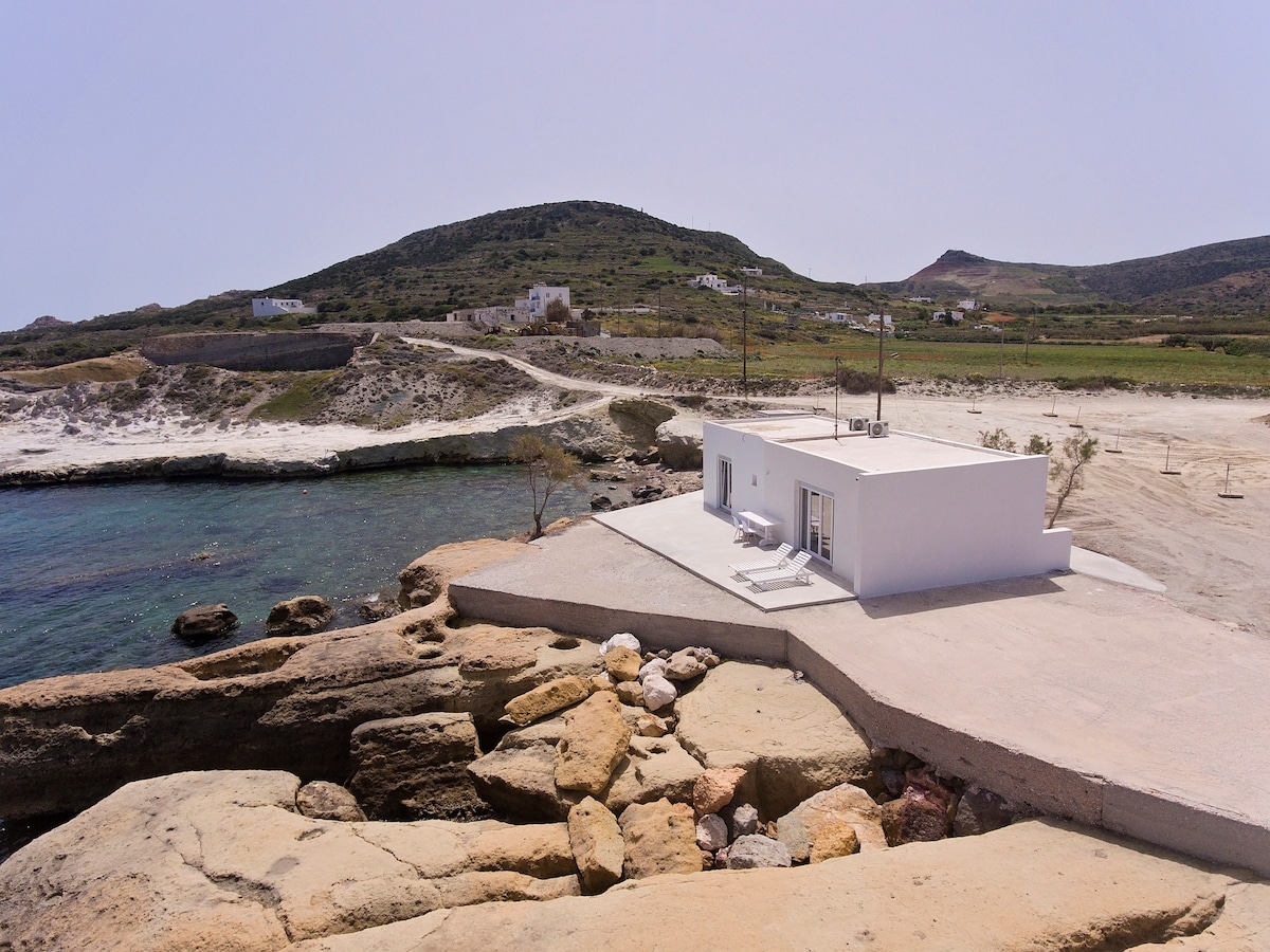 The Wind Apartment is a serene retreat nestled by the sea in Firopotamos, Milos—one of the most beautiful islands in the Mediterranean Sea. This charming apartment offers a unique experience, where the balcony literally extends over the water, and the beach, bustling with people, stretches out at your feet.