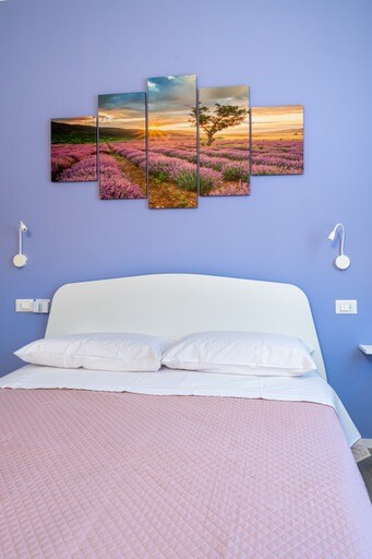 Lavender lilac is the color of the Provence Room that will make you relive the suggestions of a land rich in scents and colors that will enchant you with incredible elegance. Located on the 1st floor of the farmhouse, overlooking the medieval village of Offagna is to be used as a single or double room. Inside there are: - PRIVATE room in room -Kitchenette and wicker table with relaxation corner - mosquito net - balcony with table and chairs -heating and ceiling fan