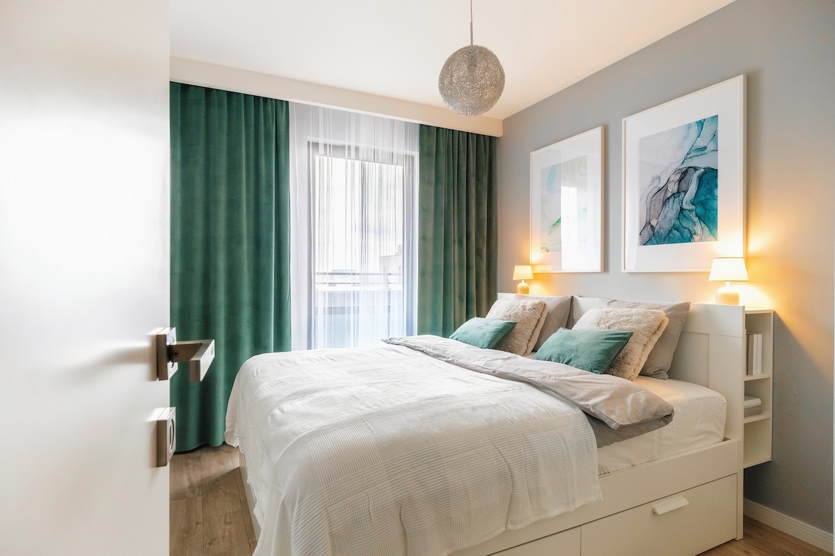 Comfortable, fully equipped apartment in a new building. A living room with an open kitchen divided into a dining and sitting area. The bedroom has a queen bed and a spacious closet. There's also a walk-in closet as an extra storage space. There are shops, restaurants and cafes in the area Equipment: air conditioning, coffee maker, kettle, iron, ironing board, washing machine Directions from Chopin Airport 20 min taxi 50 min communication from Modlin Airport 50 min taxi 120 min communication