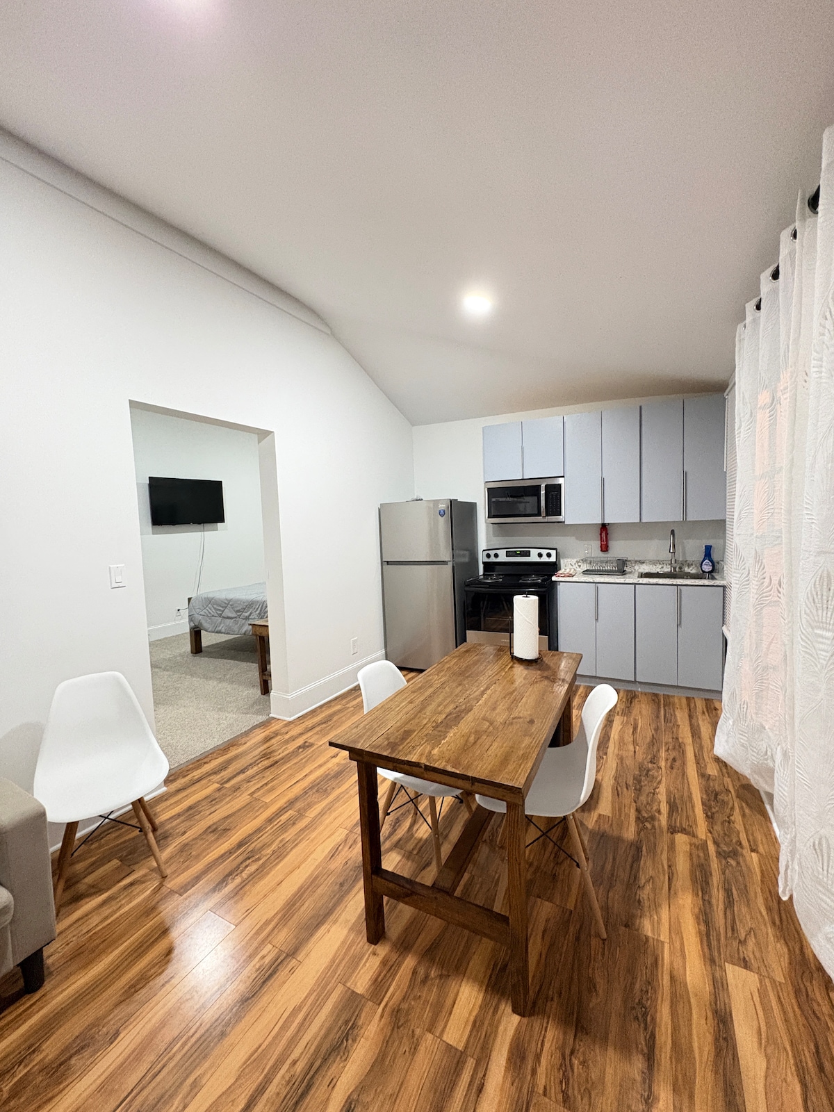 The Cottage is very cozy with a mixture of vintage and industrial decor. Visitors will have complete privacy within the house at all times, but with our home close by, we are always happy to help should you need anything! We are located in Downton Brandon in the Historic District. The Cottage is a guest house seated behind our home; it is a very quiet place, and it is great for working individuals, couples seeking a fun concert experience, or families participating in ball tournaments.
