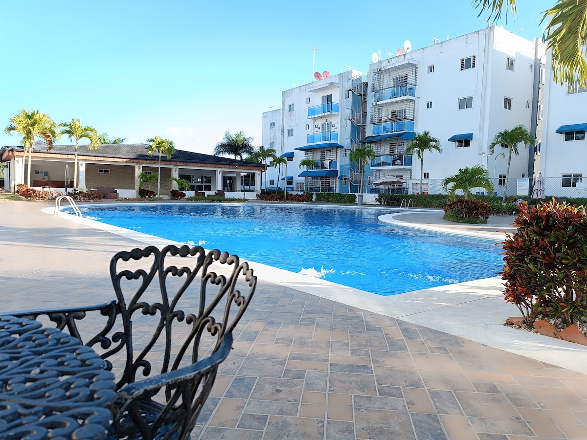 All in one place! This ideal space for an unforgettable vacation with your loved ones. Fully air-conditioned, it boasts a private terrace with a Jacuzzi on a top floor with stunning views! Private billiard, Dominos, and access to the pool and social areas. You'll rest in three bedrooms with air conditioning and TVs, a gym, a basketball court, and a children's play area. Located 10 minutes from the airport in a gated complex with 24/7 security, it's perfect for a relaxing and fun getaway.