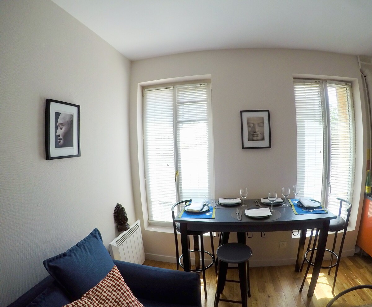 Beautiful studio in the heart of Neuilly-sur-Seine, fully renovated in 2025. Formerly a mews, nestled in a 1930s Art Deco house, it offers a peaceful and character-filled setting. Just steps from Paris, in one of its most elegant and exclusive neighborhoods, this guesthouse-style independant studio combines comfort, smart design and charm. Fully equipped kitchen, 160 cm bed, high-speed Wi-Fi, smart TV, bathtub, and leafy private patio. A refined cocoon for a calm, elegant and inspiring stay.