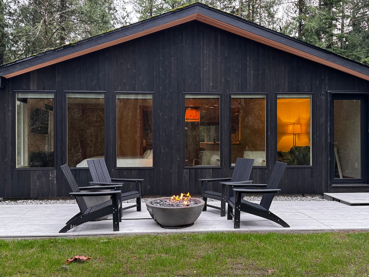 Drive down past our farm amongst the trees & wildlife. Adventure awaits in this beautiful nordic tiny cabin we curated for you to enjoy . Enjoy & gather eggs from the hens, eat from the garden, s'mores, swing on the swings, play games, records, & open the wall to wall front glass doors, wood fired hot tub & watch the sea of trees move in the wind on the porch. 15min -Tacoma/13 min - Puyallup fair/45min to airport and Mt. Rainier. + on adventures in listing photos. @theevergreentinycabin