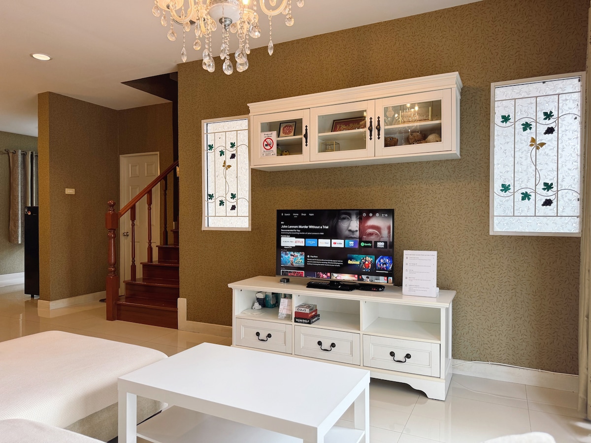 Entire House •Enjoy100% privacy •Up to 6 guests •Suvarnabhumi Airport 23 min. •Travelers with a layover •Good choice for waiting for next flight •Stay a little bit outside Bangkok city center •Golf courses 15 minutes away •Now fully added AC throughout the house all bedrooms,Living & Dining area •Fully furnished,self-contained •Smart TV (Living area / Master bedroom) •3 Bedrooms with AC •2 Bathrooms(water heater2nd Floor) •Small kitchen,microwave,induction cooker •Pets allowed •Private parking