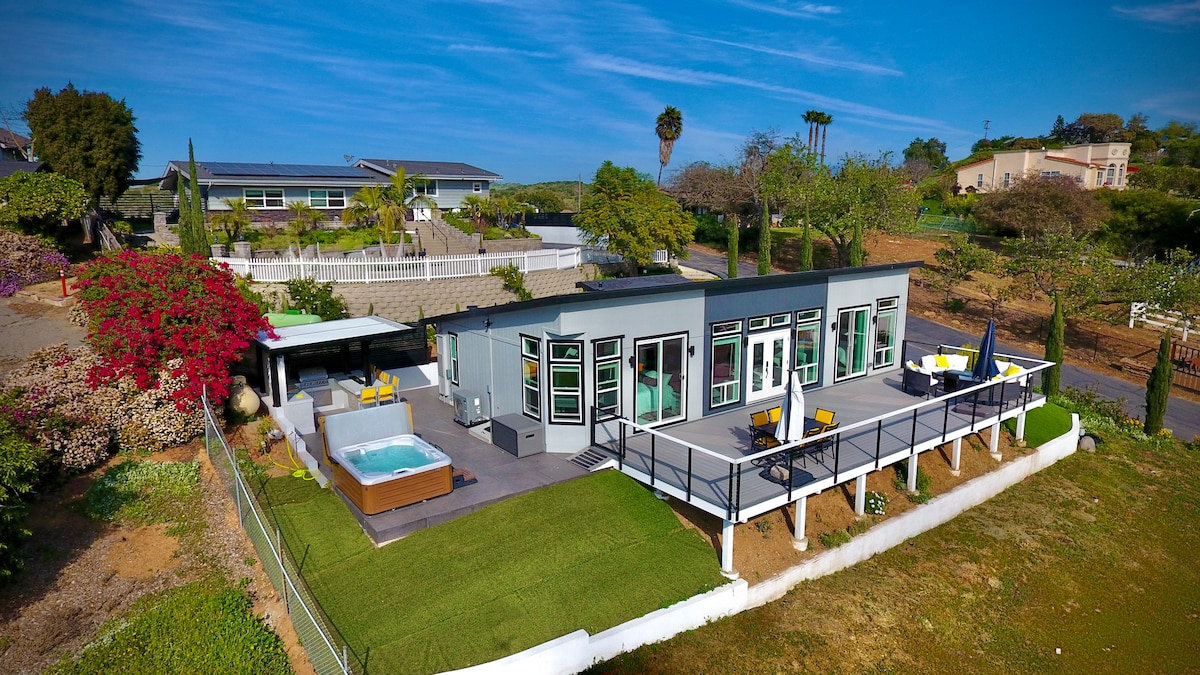 Welcome to our stunning newly built Casita secluded on a 3-acre property in the hills of Vista, San Diego. With sprawling views of the surrounding mountains, Carlsbad city lights, and hot air balloons above Del Mar, the Casita is flooding with natural light. Enjoy European oak wood floors, natural stone countertops, custom south facing French doors for seamless indoor/outdoor living, central air, full-size washer/dryer and a fully stocked kitchen. Location is minutes from the Carlsbad beaches!